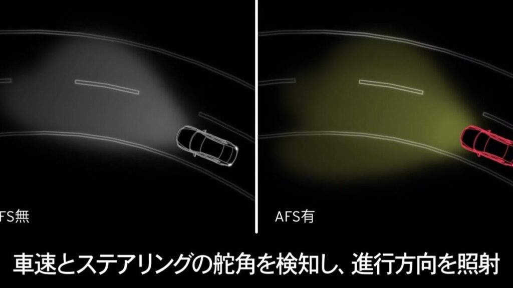 AFSは、運転条件に応じてヘッドライトを自動的に調整することで、夜間や悪天候での視認性を向上させるシステムです。この仕組みにより、ドライバーがより安全に運転できるようサポートします。
