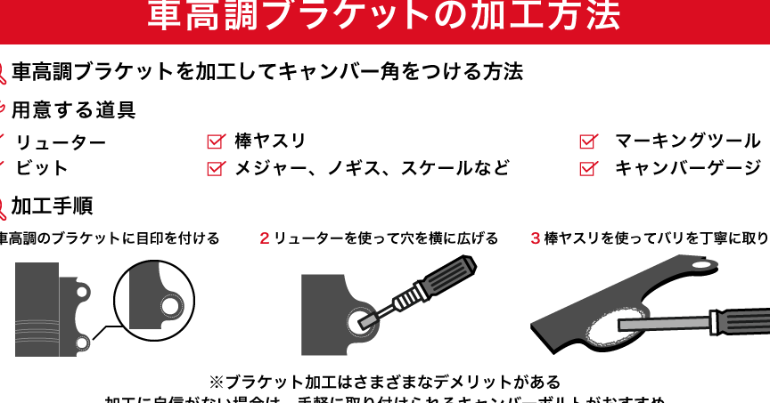 - 安定性向上:ネガティブキャンバーは、コーナリング時に接地面積が増え、安定した走行を実現します。