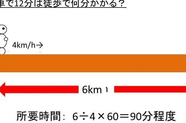 - 時間:距離(キロメートル) ÷ 速度(キロメートル/時)