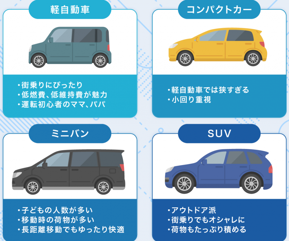 用途に応じた車の選択が大切です。例えば、通勤用、家族向け、趣味用といった分け方が考えられます。以下のポイントを考慮します。