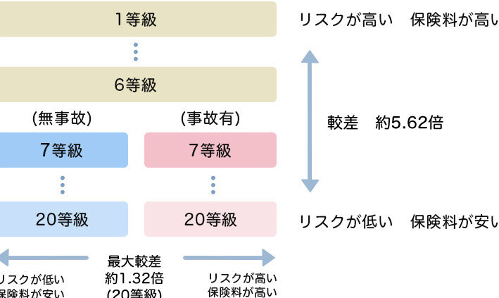 - 等級制度の仕組み: 各保険会社によって等級のランクは多少異なりますが、一般的に1等級から20等級の範囲で設定されています。