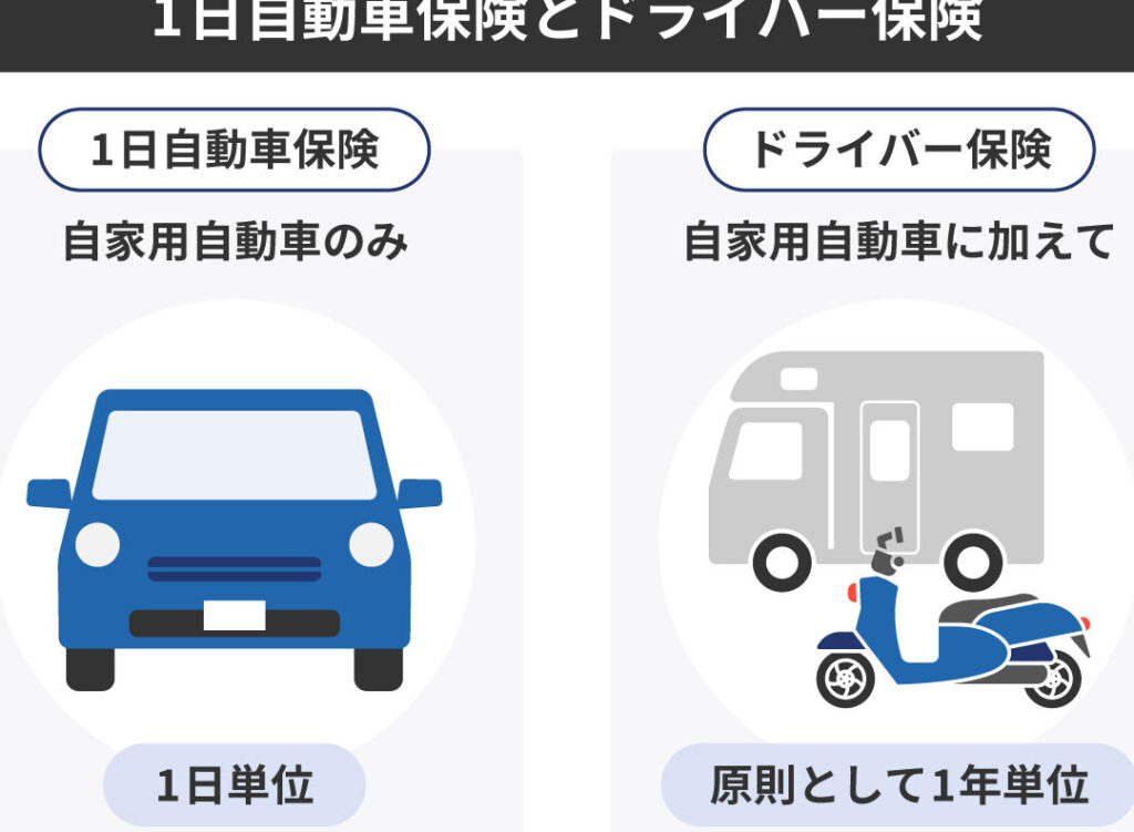 1日保険は、車両を運転する日数が限られている場合に適した保険です。具体的には、以下の特徴があります。