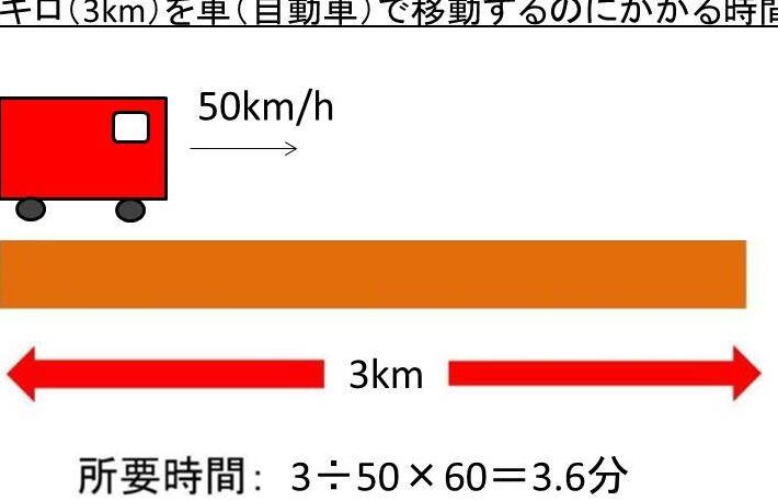 3キロメートルを車で移動する際の所要時間は、速度によって異なります。具体的な速度別の時間を把握することで、効率的な移動が可能になります。