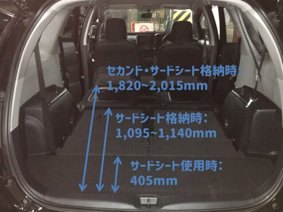 - 7人乗りモデル: シートを倒すことで約1,800リットルまで増えるため、荷物をたくさん積む必要がある時に便利です。