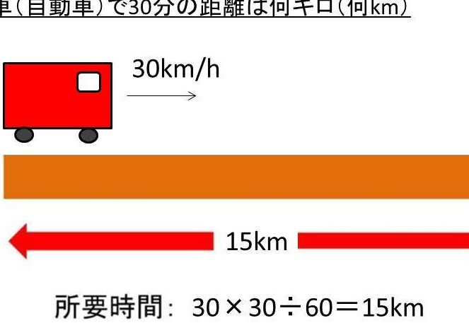車で30分の移動距離は、走行速度によって異なる。例えば、一般的な速度60キロメートル毎時で走行すれば、約30キロメートル進むことができる。一方で、速度が80キロメートル毎時の場合、移動距離は40キロメートルに達する。