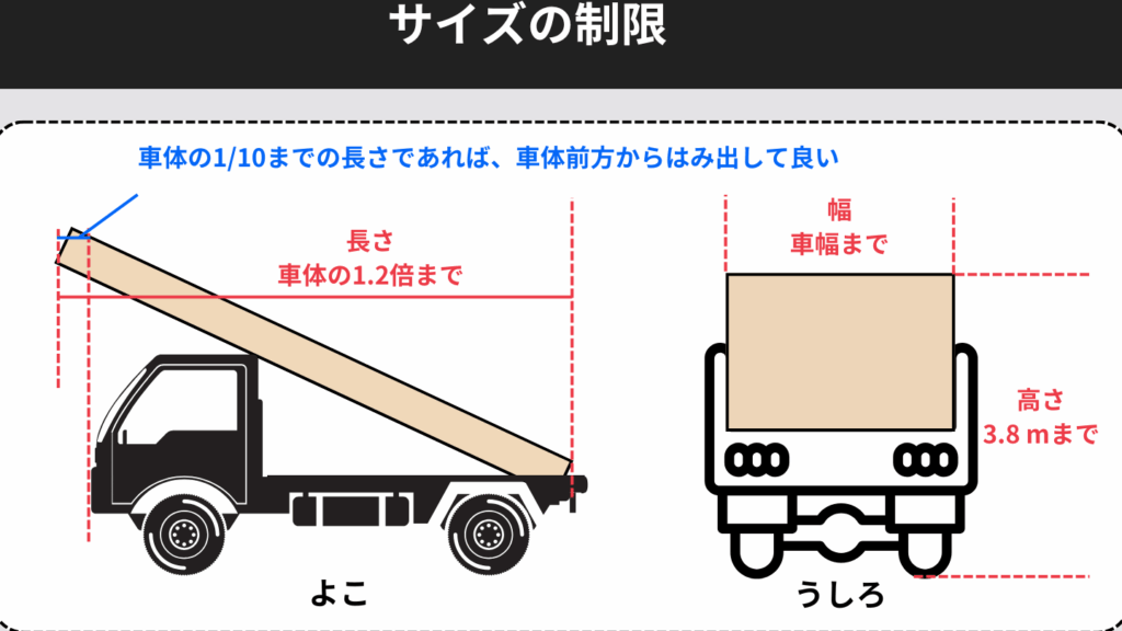 - 車の総重量が、普通車や大型車の区分に基づく制限内であること。