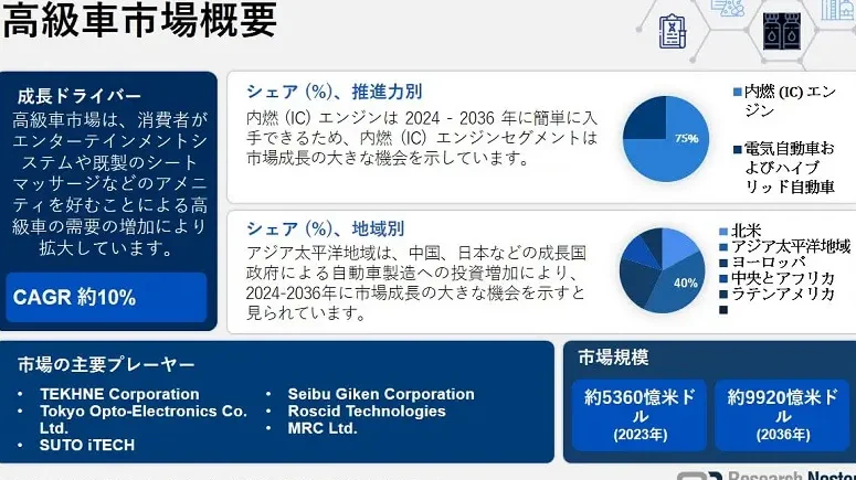 - 所得の増加: 高所得者層が拡大し、消費力が向上しています。これにより、高級車の購入が可能になる人々が増えています。