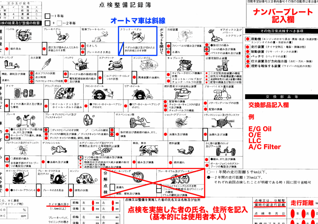 - 整備日時:整備を行った日付を正確に記入します。