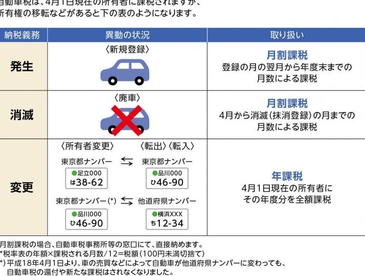 - 東京都: 税率は1,500円から9,000円で、排気量により異なる。