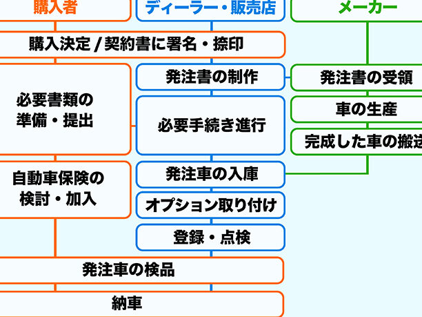 | 契約手続き後 名義変更・登録 自動車保険加入 納車準備 |