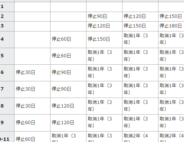 これらの基準は、多くの場合、一年間以内に累積された減点数によって判断されます。そのため、短期間内に複数回違反を繰り返すと、より厳しい処分が科せられることになります。