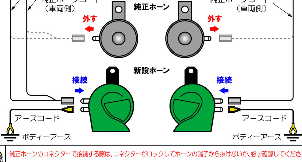 - 動作確認: 最後にバッテリーを接続し、新しいホーンが正常に機能するか確認しましょう。