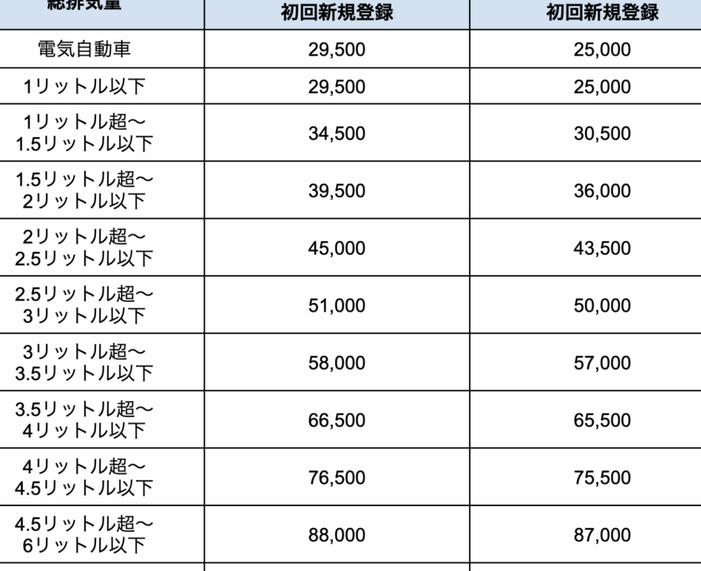 - 登録手数料: 車を正式に所有するための登録手続きにかかる料金です。