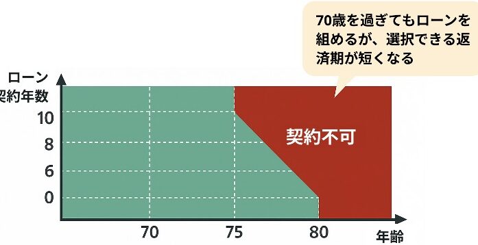 - 最高年齢: 一部の金融機関では70歳未満までとする場合もありますが、高齢者向けプランでは80歳まで融資可能なケースも見受けられます。