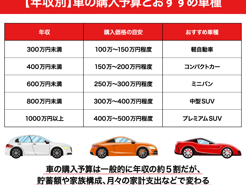これらを踏まえて、自分たちが「車 いくらまで」購入可能か具体的にイメージしましょう。