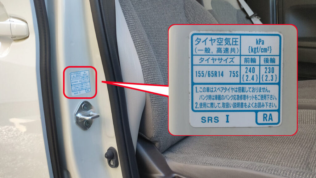 これらはあくまで一般的な数値であり、具体的な数値についてはオーナーズマニュアルや運転席ドア付近に貼付されているラベルなどで確認できます。