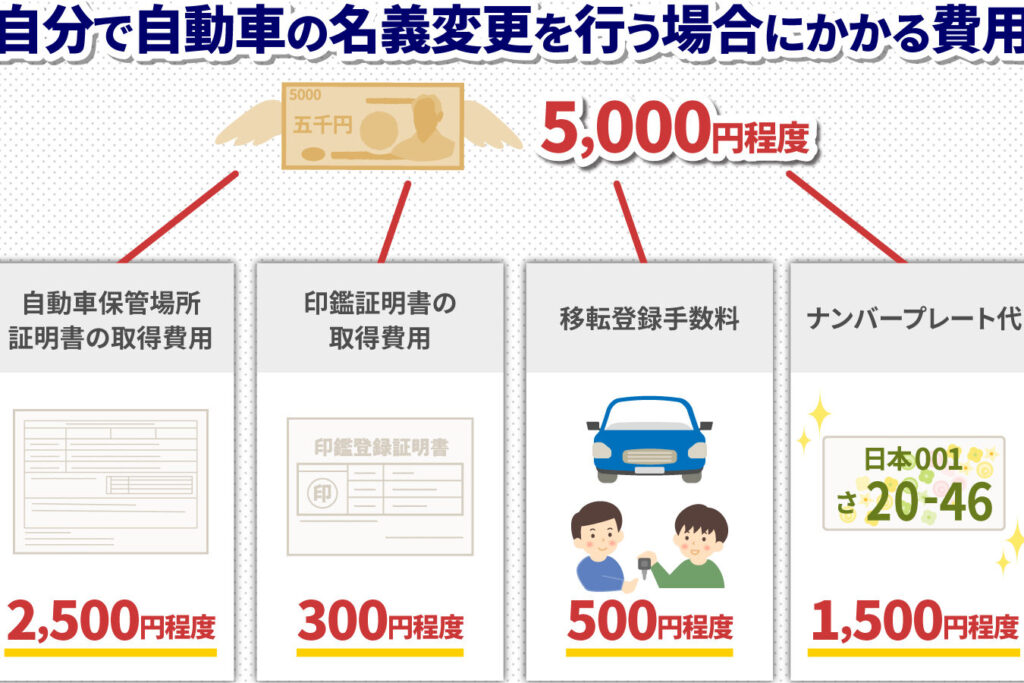 - 登録免許税: 名義変更時に課せられる税金で、通常は1,000円から数万円程度。