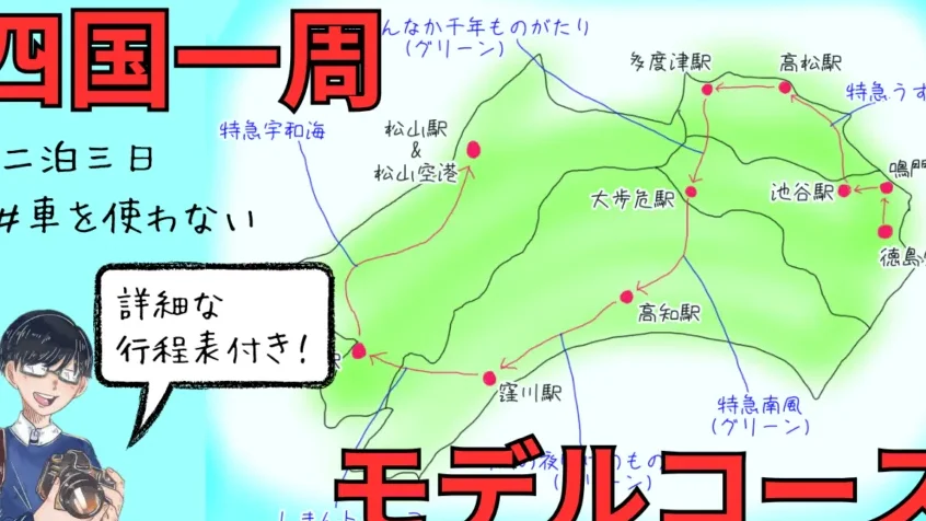 以下は、具体的な旅行プランの例です。このプランでは、四国全体を効率よく回るためのルートと主要観光地を含めています。