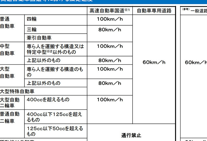- 高速道路: 最大時速100~120 km/h(地域によります)
