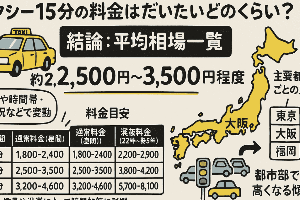 以下は、日本の主要都市と地方におけるタクシー料金の一例です。これにより、どれくらいの運賃差があるかを把握できます。