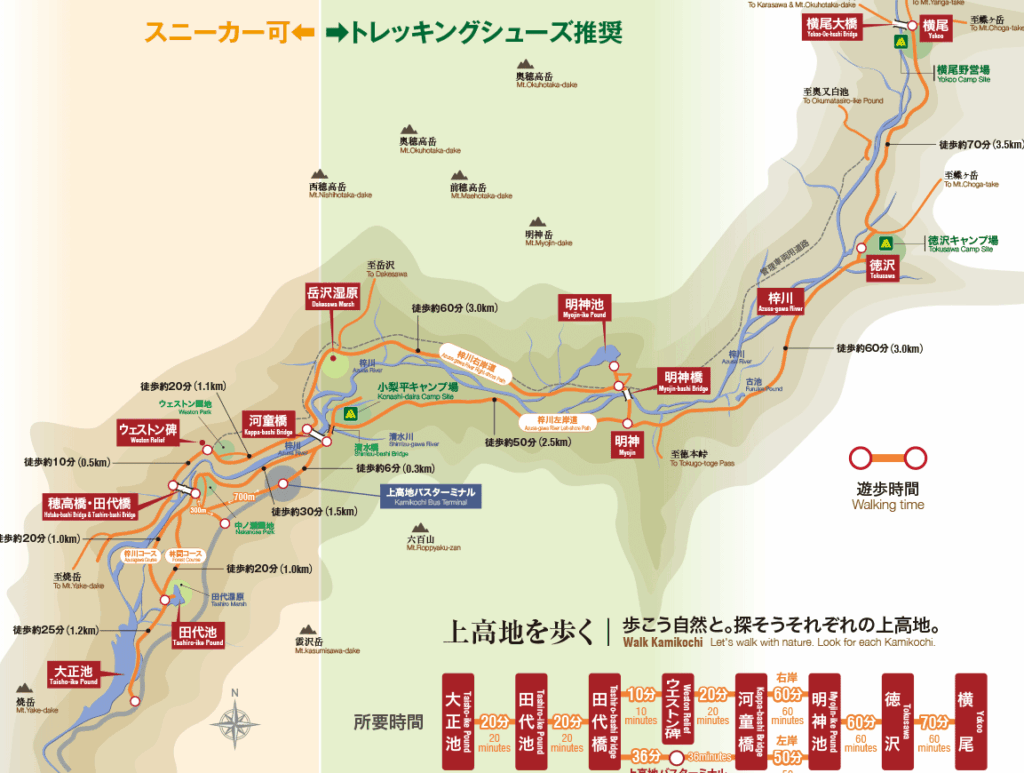 | 梓川 | 整備された遊歩道で散策可能 | シャトルバス利用または徒歩10分 |