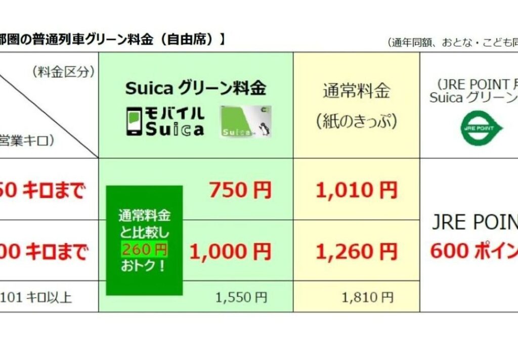 グリーン車の運賃は通常の車両と比べて高めですが、その分快適さやサービスが向上しています。例えば: