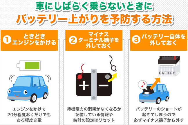 - 定期的に運転している方は問題ありませんが、不定期の場合はエンジン起動後すぐ充電されるとは限りません。