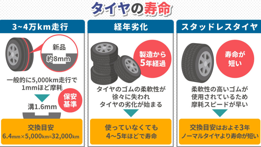 タイヤを交換するべき目安としては次のようなポイントがあります: