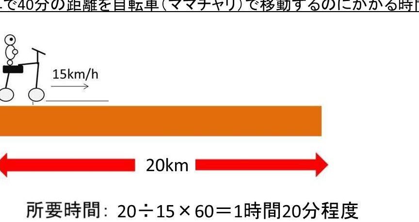 - 所要時間(時間) = 距離(キロメートル) ÷ 速度(キロメートル/時)