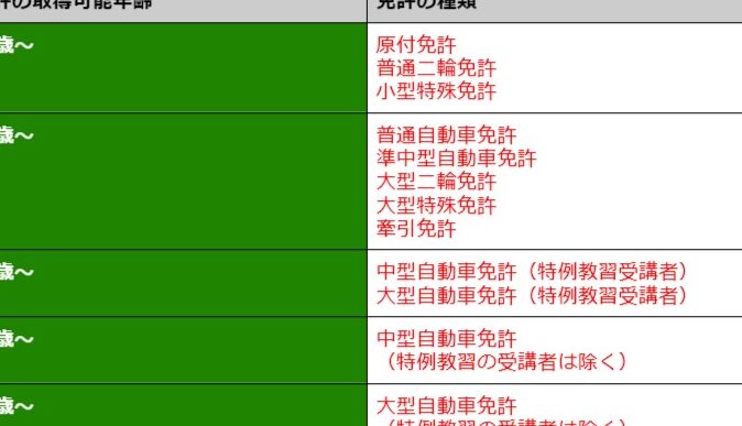 | 大型二輪 | 20歳 | – 厳しい実技テストが求められる – 健康状態による追加検査が必要な場合もある. |