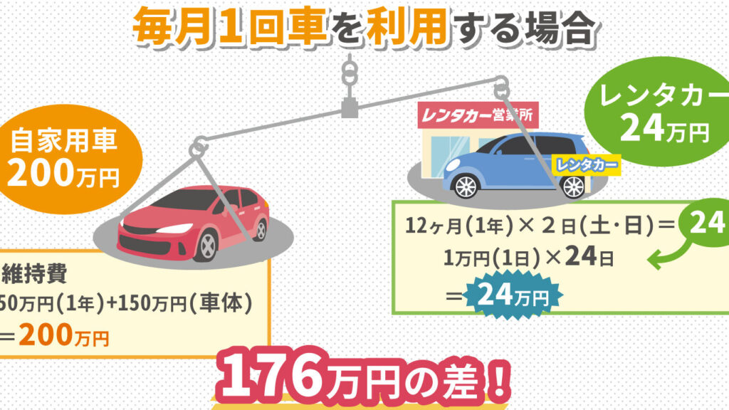 - 毎日の通勤や長期間使用する場合: 車を購入した方が結果的には安上がりになることがあります。