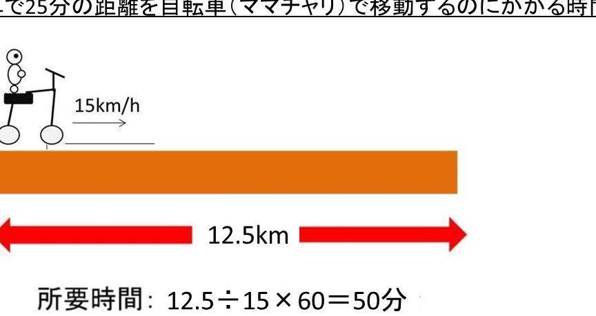 私たちが運転する際には、選択した速度によって所要時間が大きく異なることがあります。例えば、高速道路では80キロメートル以上で走行できる一方、市街地では40キロメートル程度になることもあります。このような状況下での計算式は次の通りです。