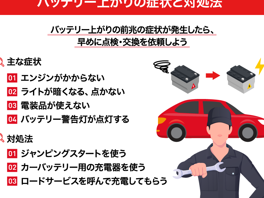 - 警告灯点灯: ダッシュボード上にあるバッテリー関連の警告灯が点灯することがあります。この兆候は早めのチェックを促します。
