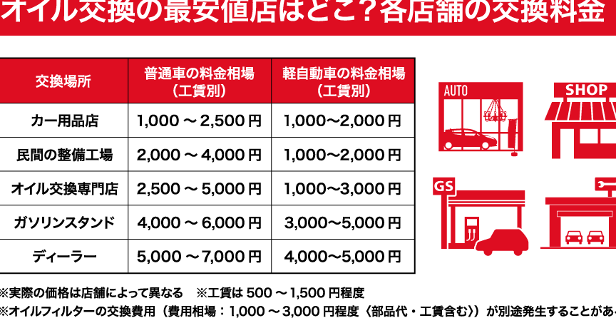 - 基本料金: オイル交換そのものにかかる基本的な費用。