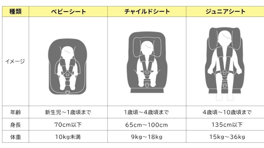 | 0〜4歳 | チャイルドシート必須 |