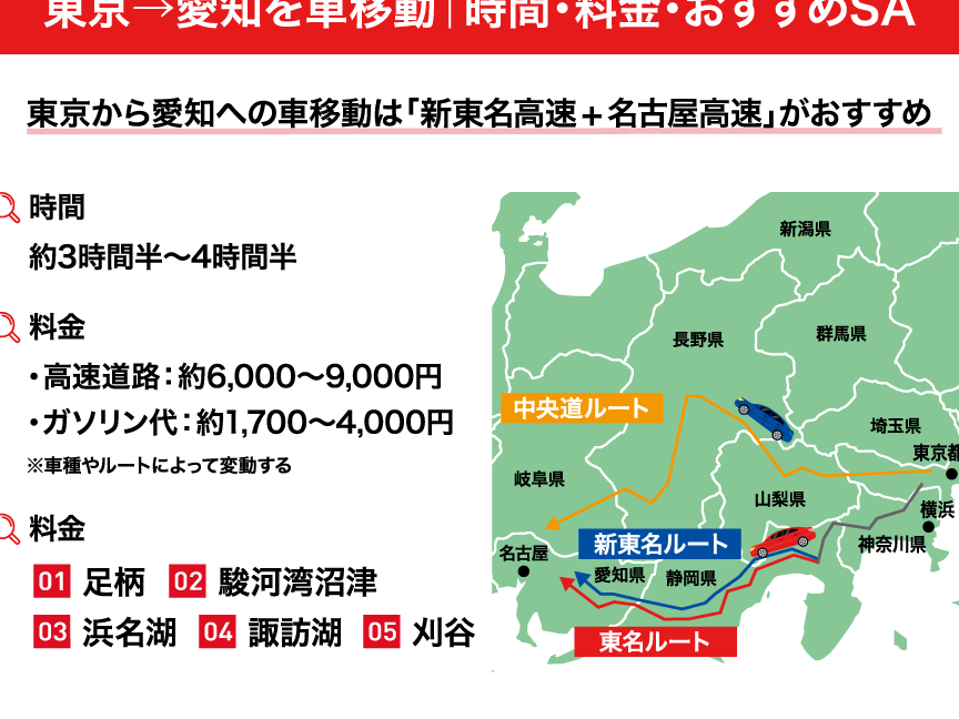 | 東名高速道路経由 | 約4000円 |