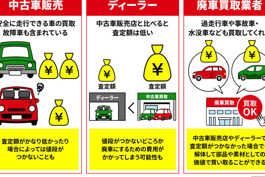 一般的にディーラーへの下取りよりも買取価格は低めになることが多いため、高額で売却したい方には不向きかもしれません。