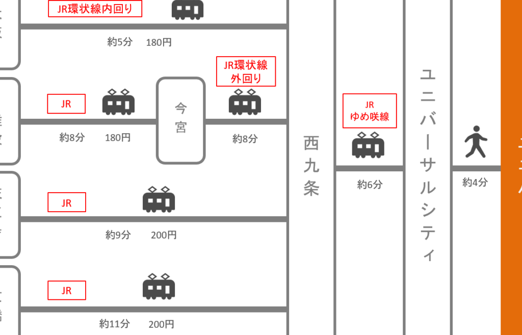 - 乗り換えの柔軟性:主要駅からユニバへの直通列車があるため、複数の路線を活用してスムーズに移動できます。